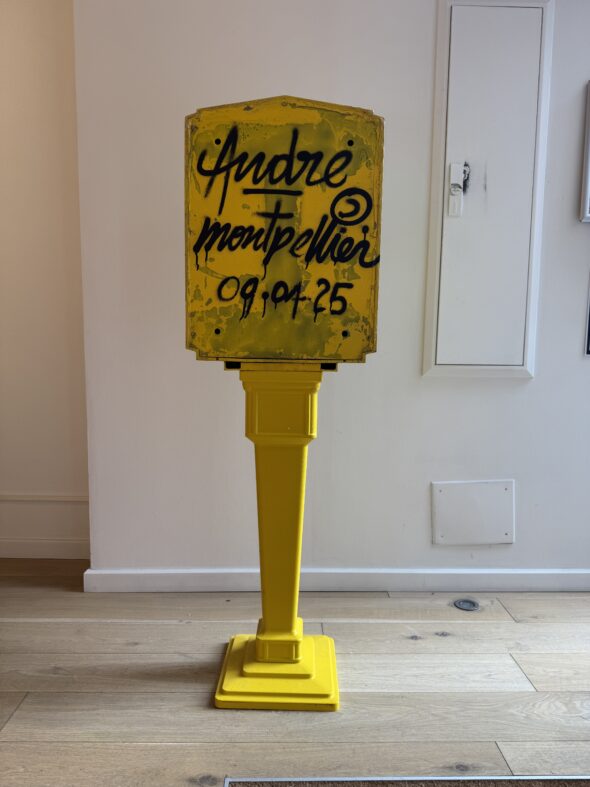 Dans les années 1990, il se fait connaître en envahissant les rues de Paris avec son personnage iconique, “Mr. A”, une figure simple et reconnaissable, dessinée d’un trait spontané. Ce personnage devient rapidement sa signature et apparaît dans de nombreuses villes à travers le monde, de New York à Tokyo, faisant d’André l’un des pionniers de la mondialisation du street art.
