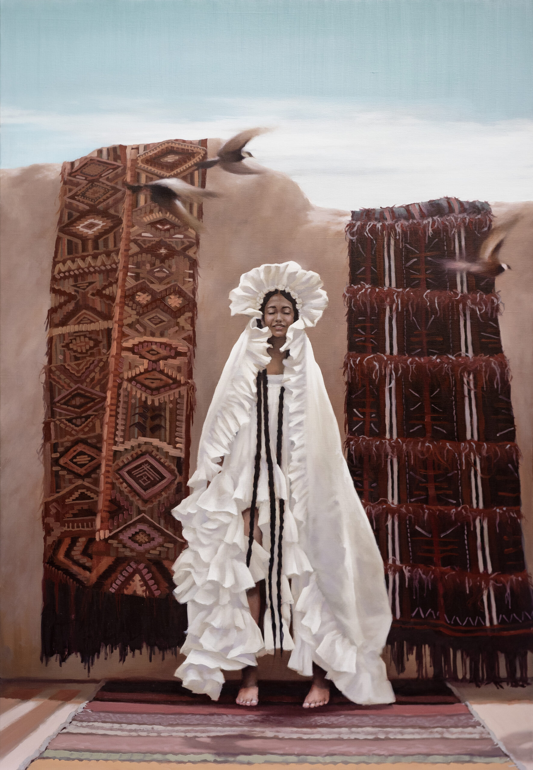 Influencé par la photographie et le cinéma, ses cadrages figés hors du temps, viennent accentuer cette recherche de la scène de genre la plus pure où tout est suggestion : une peinture subversive, vulnérable et douce.